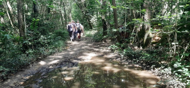 Il a fallu un peu de courage pour les 12 randonneurs – randonneuses de l’après-midi. Il fait très chaud. Mais nous optons pour le sentier de La Garenne des Sars EST qui est très boisé. Encore une belle montée en chemin creux pour passer devant cette parcelle du Conservatoire du Vignoble fléchois puis on s’enfonce dans les chemins creux bien ombragés, pas trop frais car la chaleur est bien présente. On rencontrera malgré tout des tronçons boueux et une curiosité : un crapaud « escaladeur » . Retour à St Germain sans hésiter en repassant devant notre lavoir rafraichissant puis la Société de Boule de Fort « La Violette ». Boule de Fort, jeu de boules régional mais qui devient confidentiel. Belle journée mais quelle chaleur.