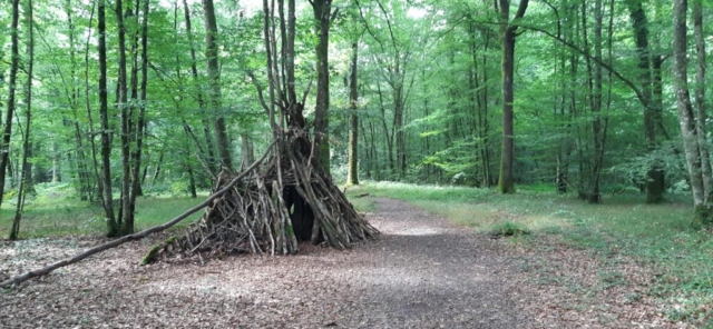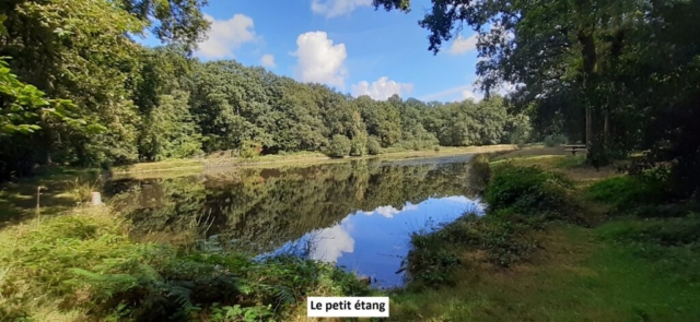 Retour dans le  bourg par un chemin creux montant tout en passant devant l’ancienne école des garçons. Ecole du guide du jour jusqu’en 1960. Traversée du bourg vers le lavoir puis direction la campagne. On emprunte le tracé de l’ancienne ligne de chemin de fer Sablé – Sillé jusqu’à passer Paris (ancien PN). On laissera Venise sur la gauche et filons à travers forêt et chemin jusqu’à la Triponnière. Nous pénétrons dans la forêt domaniale de la Petite Charnie , la cible de la journée. Cheminement sur des sentes ou chemins plus ou moins empruntés, entre feuillus et résineux suivant les parcelles. Tout cela pour arriver au Petit étang lieu de notre pique-nique. Bonne installation.