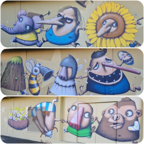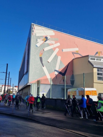 Un peu plus loin, nous entrons à la mission locale des Sablons pour y admirer une œuvre signée par Mojito Fraise.