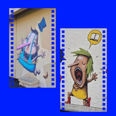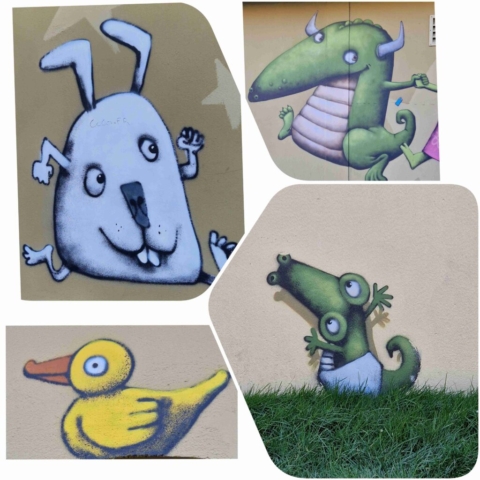 Nous atteignons le quartier de Pontlieue où une pieuvre a trouvé sa place dans le carrefour St Martin. Puis à proximité, l’œuvre de Seth, célèbre artiste globe-trotteur nous tiendra en extase. « C’est un enfant qui a une fermeture éclair géante, comme s’il dézippait le mur avec plein de couleurs » dixit Seth. Magnifique !!!