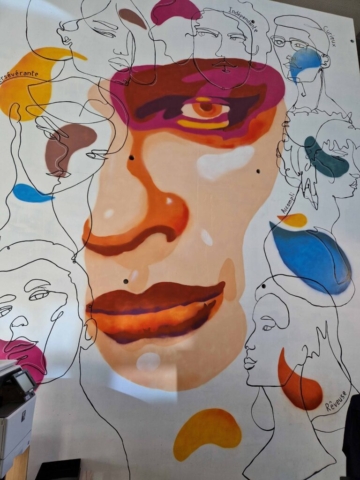 Dernière peinture, cette fois participative, au centre aquatique « les Atlantides ».
