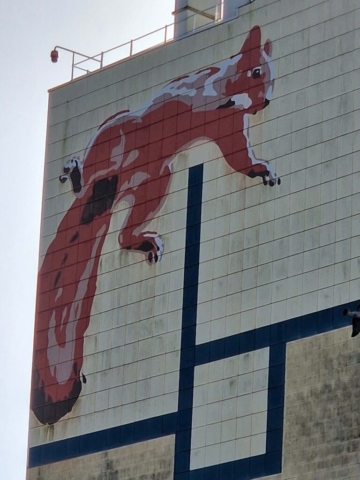 Nous nous mélangeons quelques instants aux marchands et clients du marché hebdomadaire des Sablons avant de retrouver  un écureuil tout en haut de son immeuble…