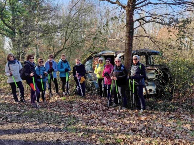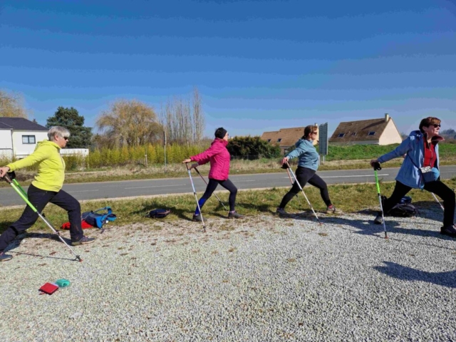 Après notre échauffement musical « années 80 », nous partons marcher sur le parcours jaune. La campagne est lumineuse, la chaleur du soleil nous fait du bien. Nous arpentons routes communales, sentiers, chemins…