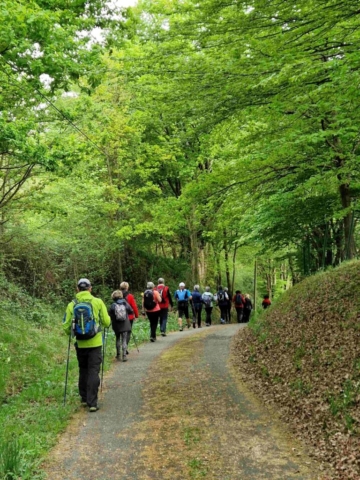 Nous enchainons les montées, les descentes, empruntons des chemins de terre, des petites routes goudronnées, des chemins creux. Nos pas nous mènent tantôt dans des sous-bois tantôt dans une campagne aux couleurs et odeurs printanières.