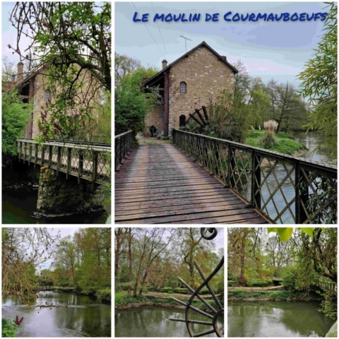 Petit détour vers le moulin de Courmauboeufs : Authentique moulin à eau datant du 17ème siècle entièrement restauré à usage d’habitation. L’accès au moulin se fait par un pont type Eiffel. Le moulin possède 2 roues. La machinerie d’un des moulins est entièrement conservée avec ses deux paires de meules à farine.