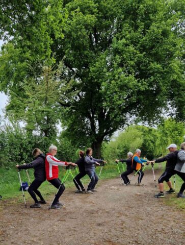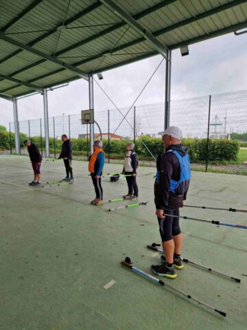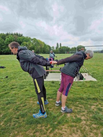 Et si nous BungyPumpions en duo : voici l’idée innovante du jour de Christine qui diversifie à chaque séance ces propositions. Donc toutes les séries d’exercices : échauffement, pauses statiques et étirements se feront à deux avec 1, 2 ou 4 bâtons dynamiques. Concentration et synchronisation sont de mises pour un accord parfait …
