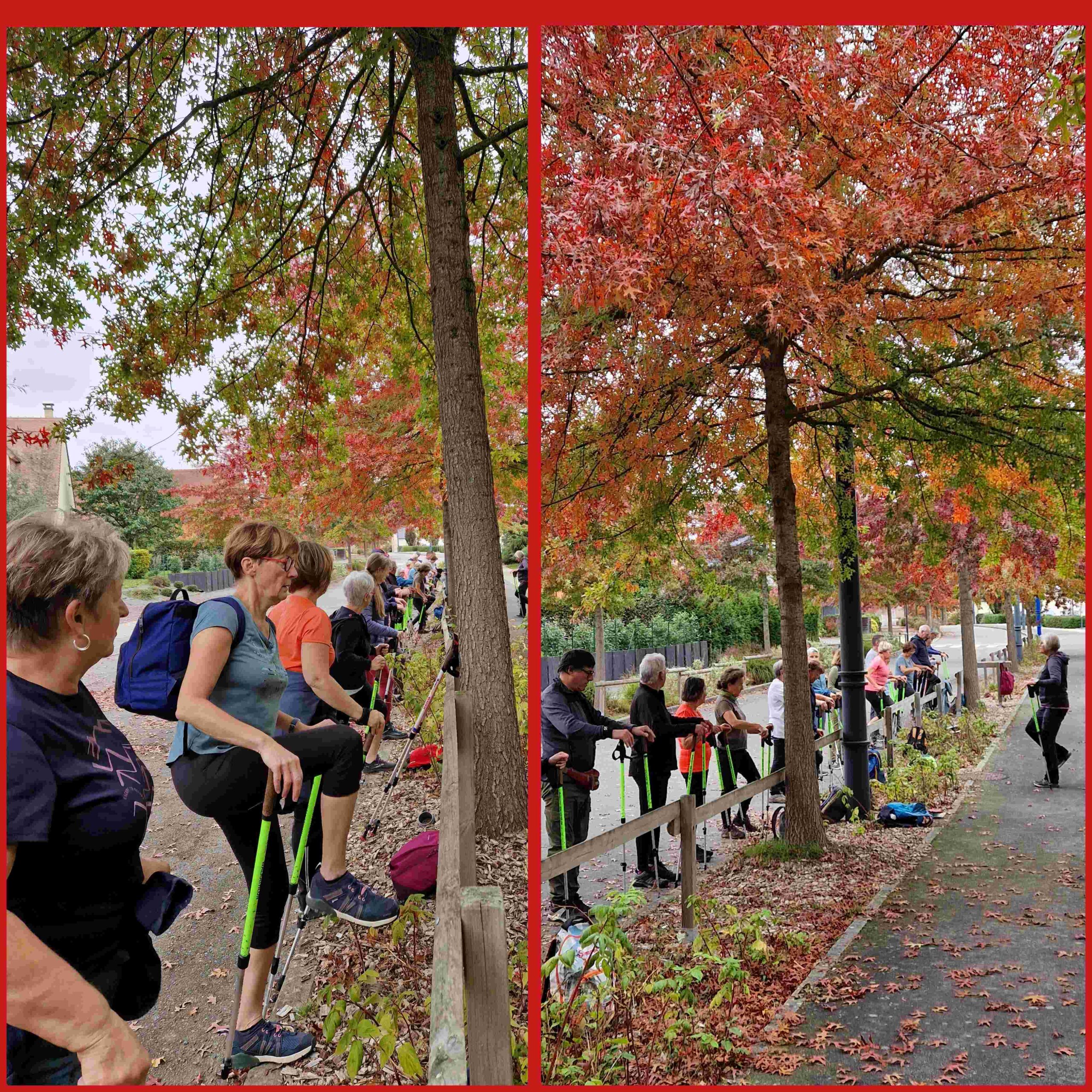 Allé maintenant, pourquoi pas une séance de Step/bâtons dynamiques sur ce trottoir qui peut accueillir tous les participants. Christine montre les différents pas : pas de base, V step, pied droit/pied gauche alterné, pied chassé … que de variétés. Ceci sur la musique branchée « Kuduro »