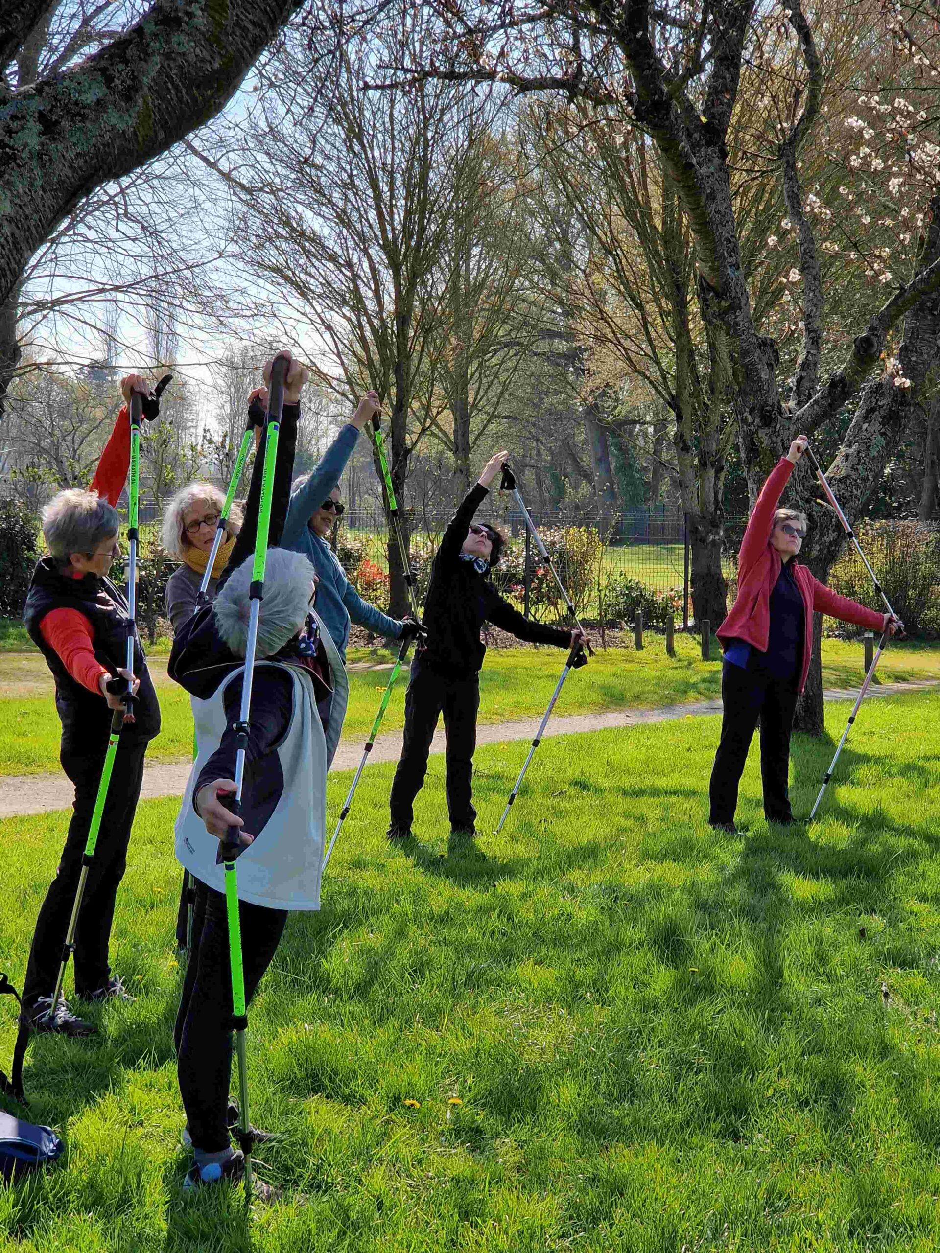 Nouvel arrêt pour des exercices d’équilibre cette fois ci sur une musique lente de Bob Dylan. Nous commençons par des petits pas « de souris » en avançant, un exercice en posture unipodale, à nouveau des petits pas « souris » à reculons et terminons pas une posture unipodale avec des mouvements de jambes tantôt vers le Nord, l’Est, l’Ouest et le Sud. Gros travail de stabilité, d’ancrage et de concentration.