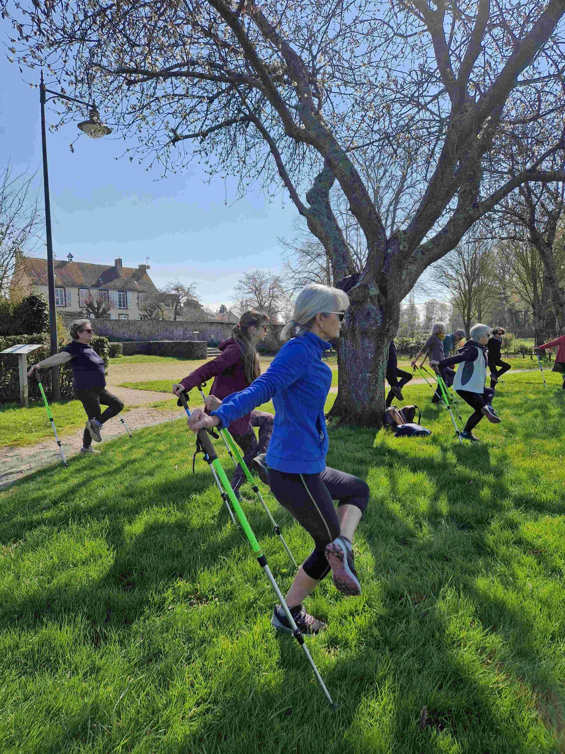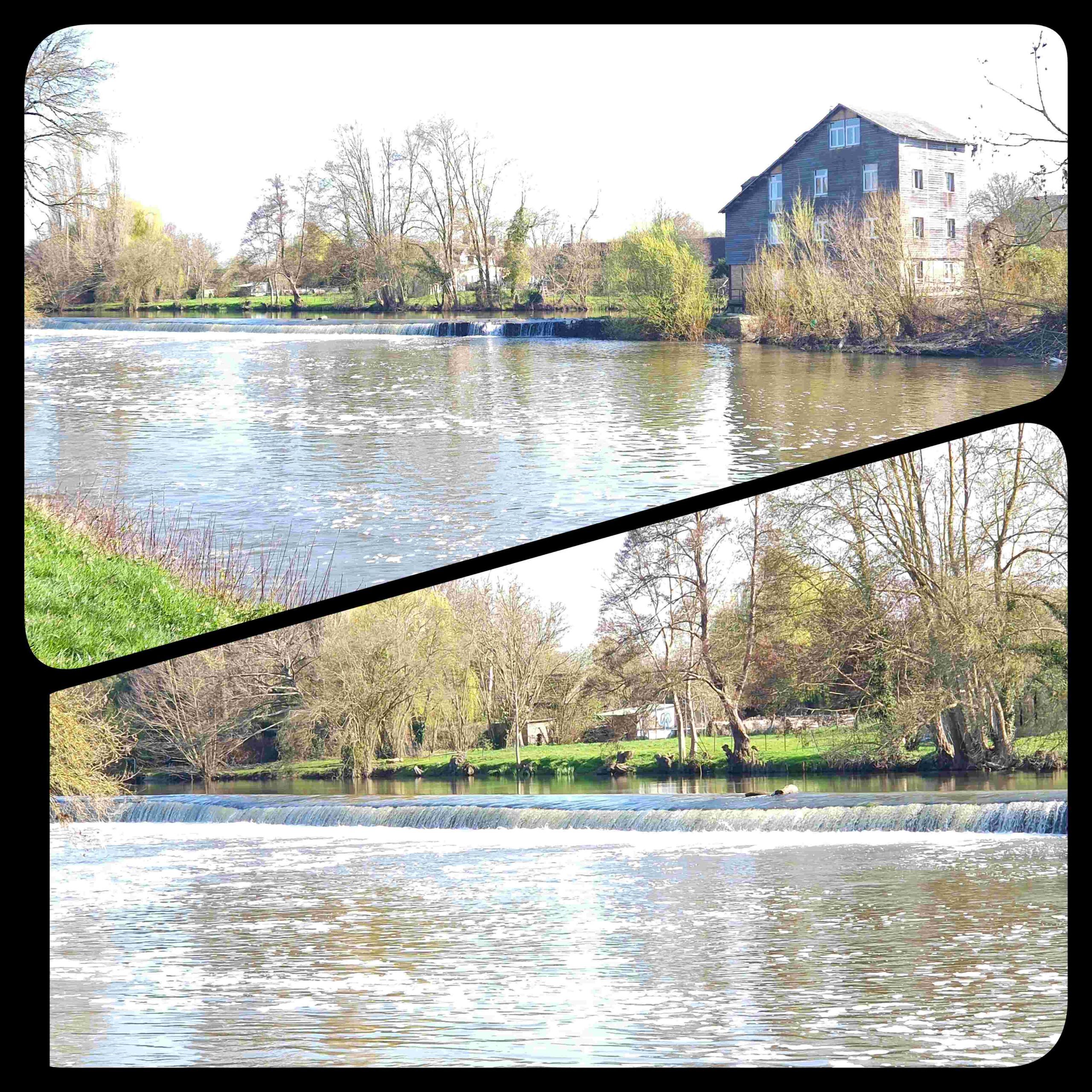 Ah, voici notre 1er arrêt pour une séance de Tabata cardio. Le cadre est magnifique sur les bords de la Sarthe près du moulin et du barrage à Montreuil. C’est parti pour des séries de petits pas en avant, en arrière, sur le côté. Et pourquoi pas des squats en demi pointe. Nous confirmons, le cardio a bien travaillé.