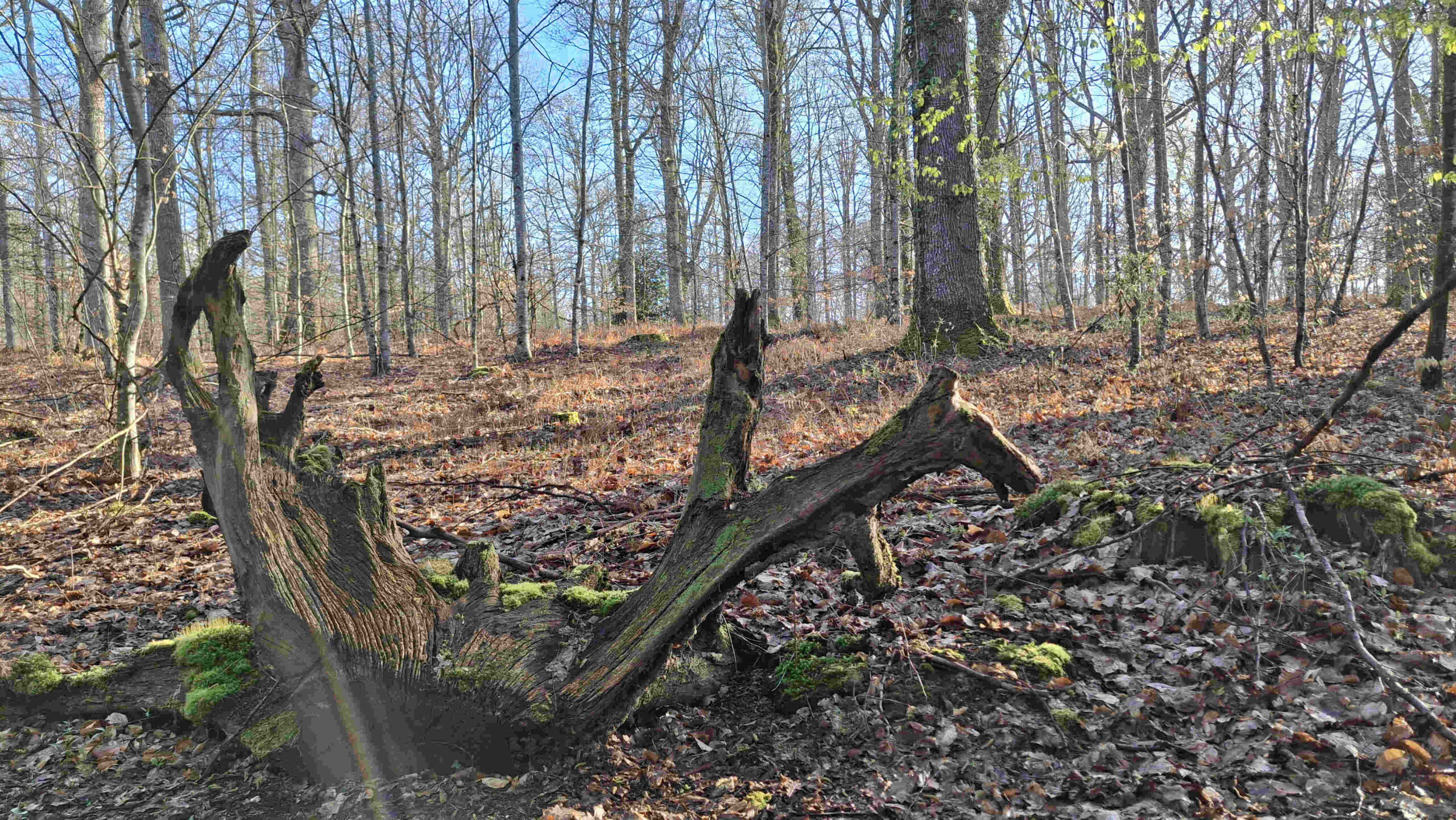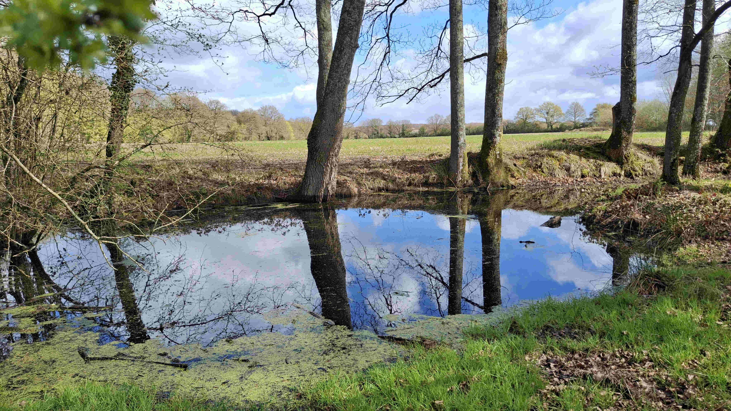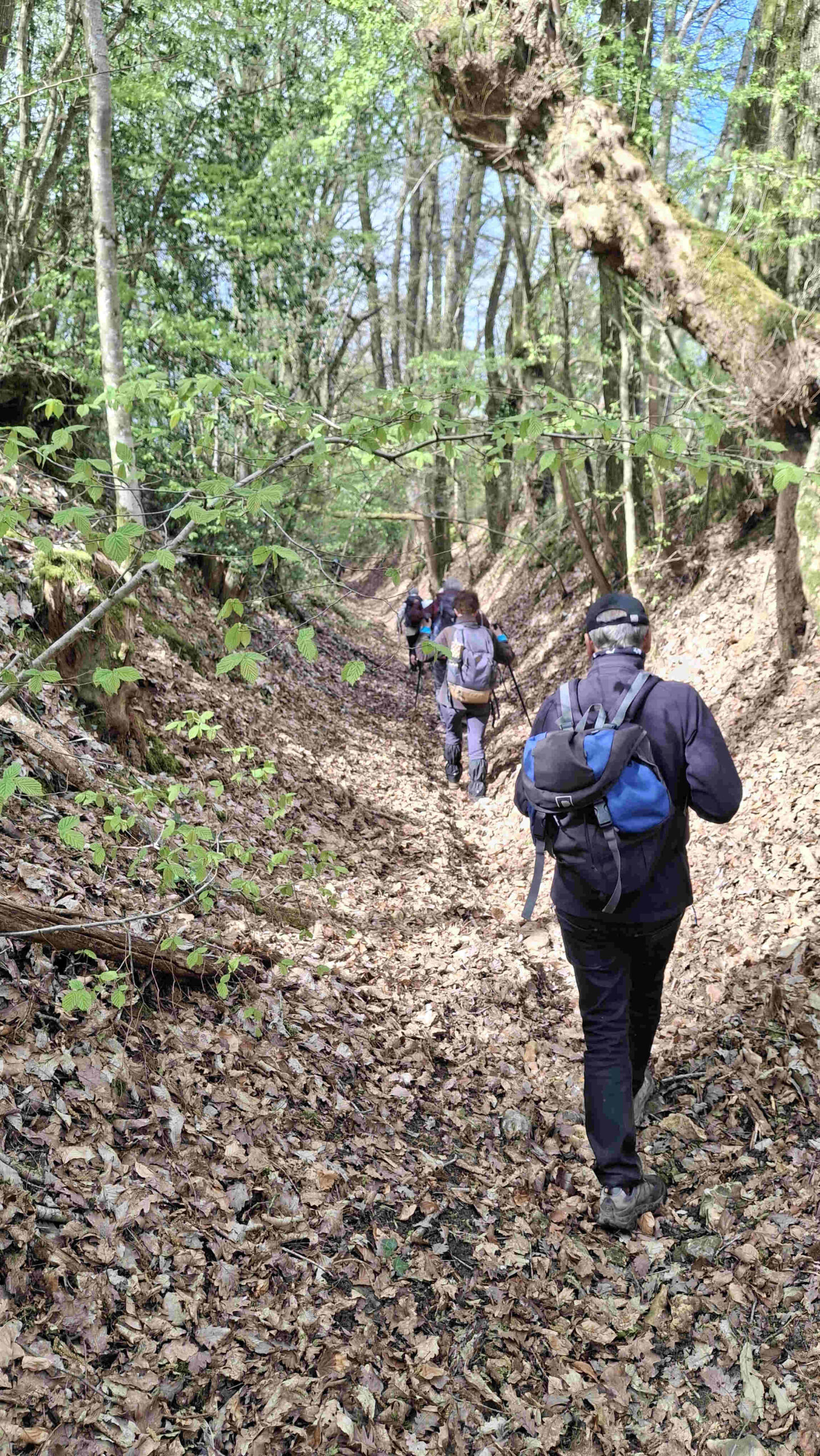 La forêt de Vibraye est très belle, le sentier est propre, les arbres attendent leur feuillage. Un beau chemin creux, pierreux, nous mène jusqu’au Gué de l’Aunay où la Braye déroule son ruban liquide. Nous atteignons les Grands Bois avec cette belle bâtisse et ce vallon bien sauvage. Une errance de guidage nous fait traverser fossé, franchir des ronces et surtout une belle grimpette. Un joker de grillé !!!. Après la traversée du bois de La Taille, l’heure est au casse-croute. Le silence règne, les oiseaux s’en donnent à cœur joie.